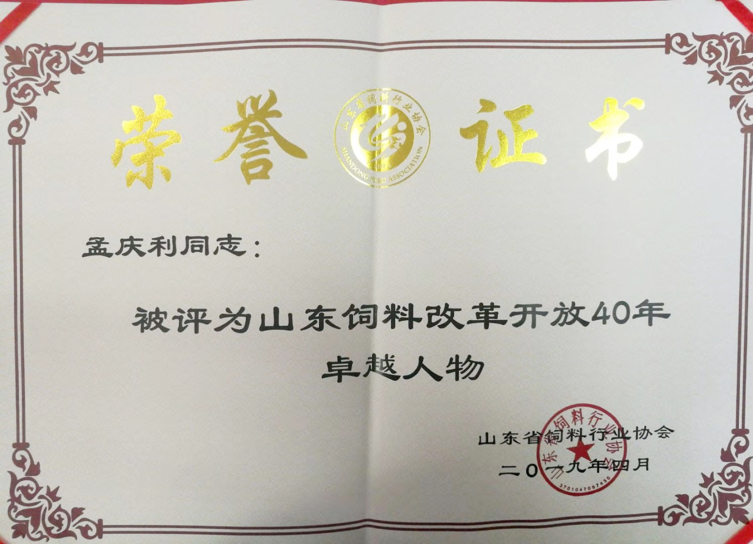 孟慶利董事長被評為山東飼料改革開放40年卓越人物