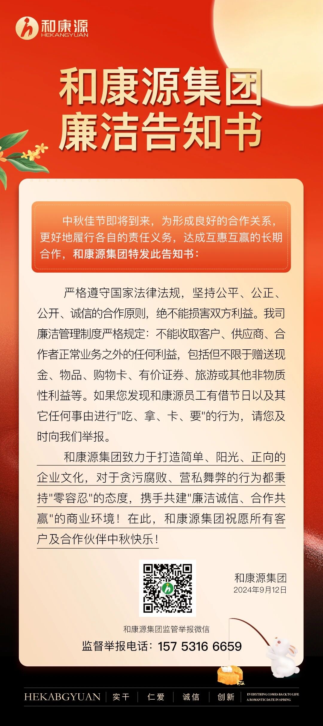 廉潔過節(jié) | 和康源集團(tuán)廉潔告知書!