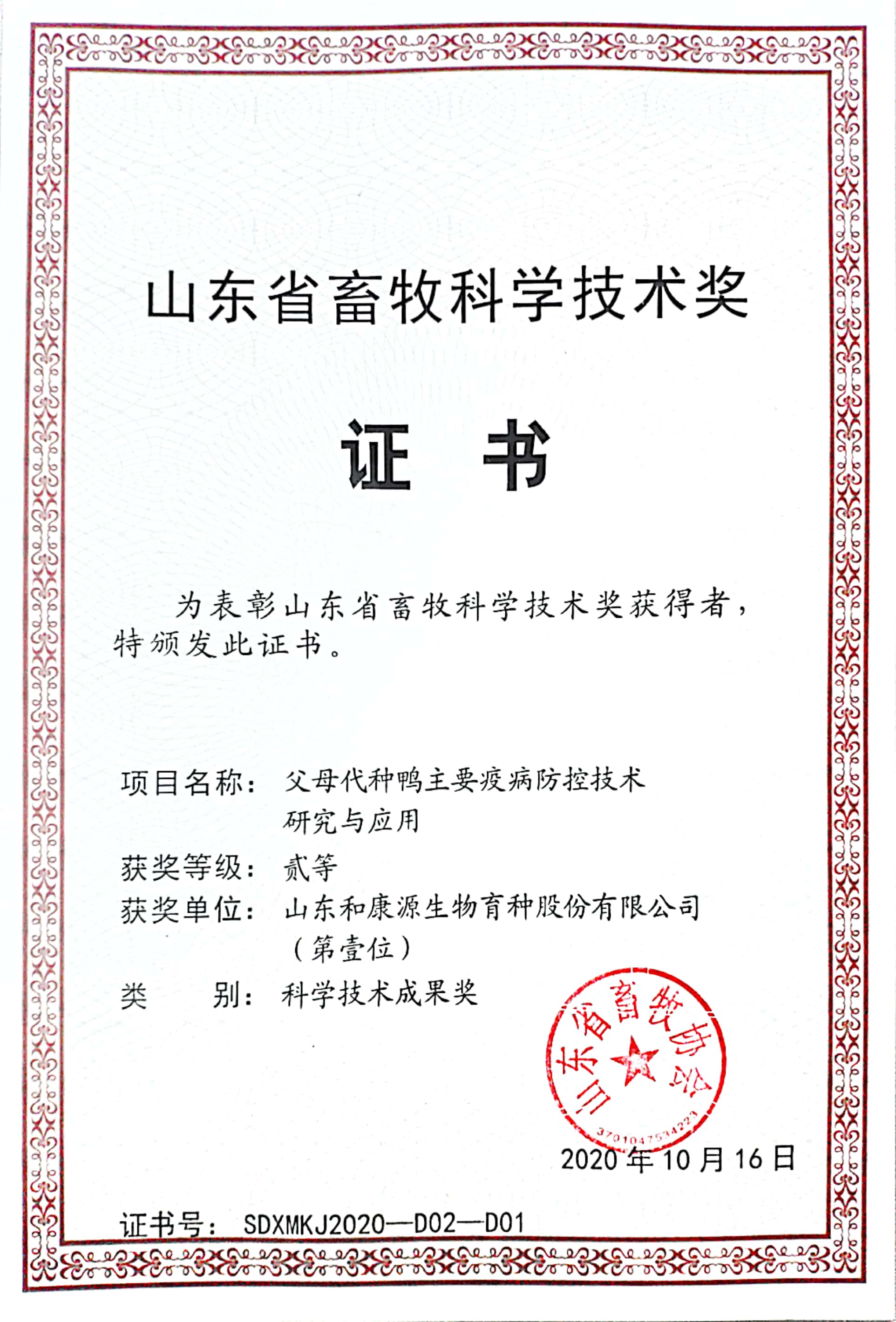 喜訊!山東省畜牧科學(xué)技術(shù)獎(jiǎng)二等獎(jiǎng)!