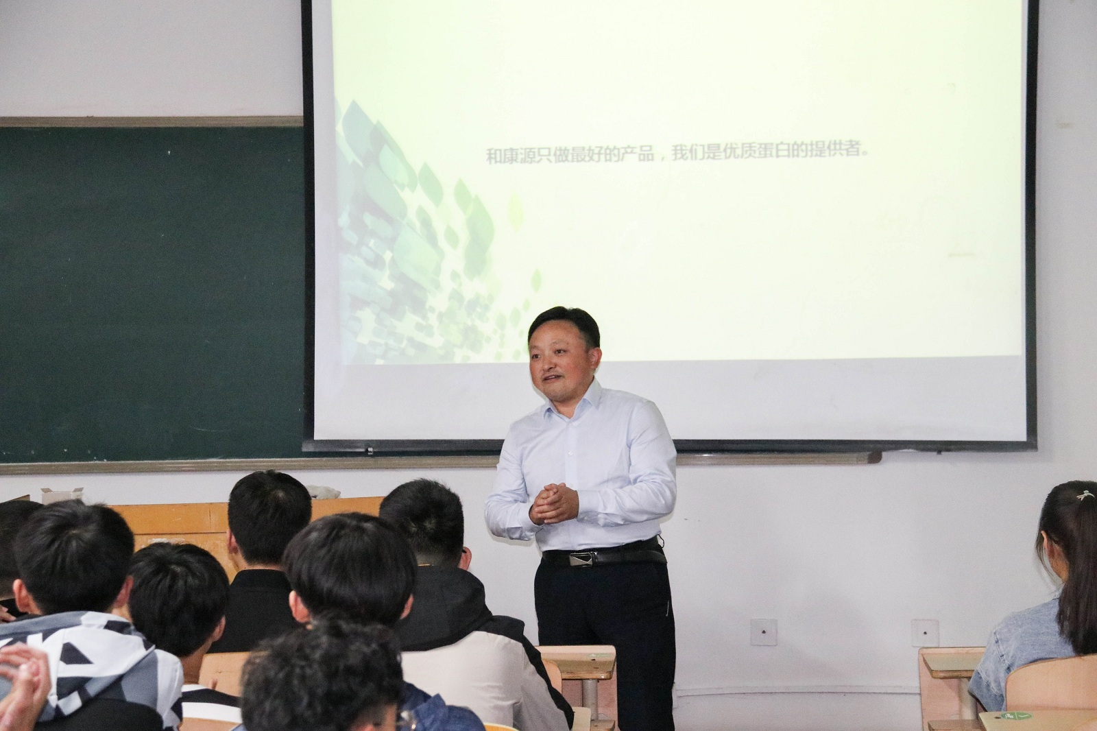 在開班典禮上,集團高級培訓(xùn)專員齊鑫受邀做了“今日農(nóng)牧學(xué)子,明天行業(yè)棟梁”的主題演講。他以生動活潑的語言簡要介紹了和康源集團的發(fā)展概況,現(xiàn)場掌聲陣陣,氣氛活躍。