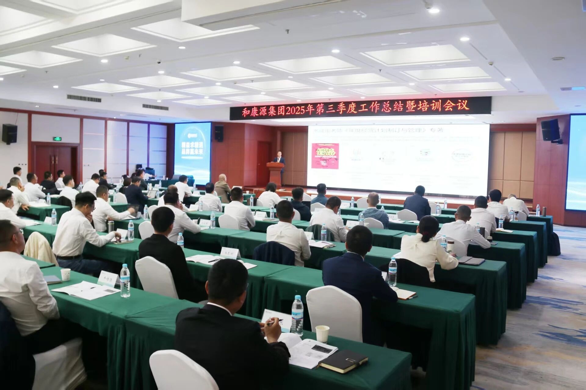 ? ? ? 10月7日至8日,和康源集團(tuán)2025年第三季度工作總結(jié)暨培訓(xùn)會(huì)議順利召開。本次會(huì)議延續(xù)年度主題“精益求精進(jìn) 品牌贏未來(lái)”,旨在全面總結(jié)三季度工作成果,為四季度沖刺及年度收官奠定堅(jiān)實(shí)基礎(chǔ)。集團(tuán)董事長(zhǎng)孟慶利及各事業(yè)部、板塊、中心及片區(qū)負(fù)責(zé)人齊聚一堂,共謀發(fā)展。
