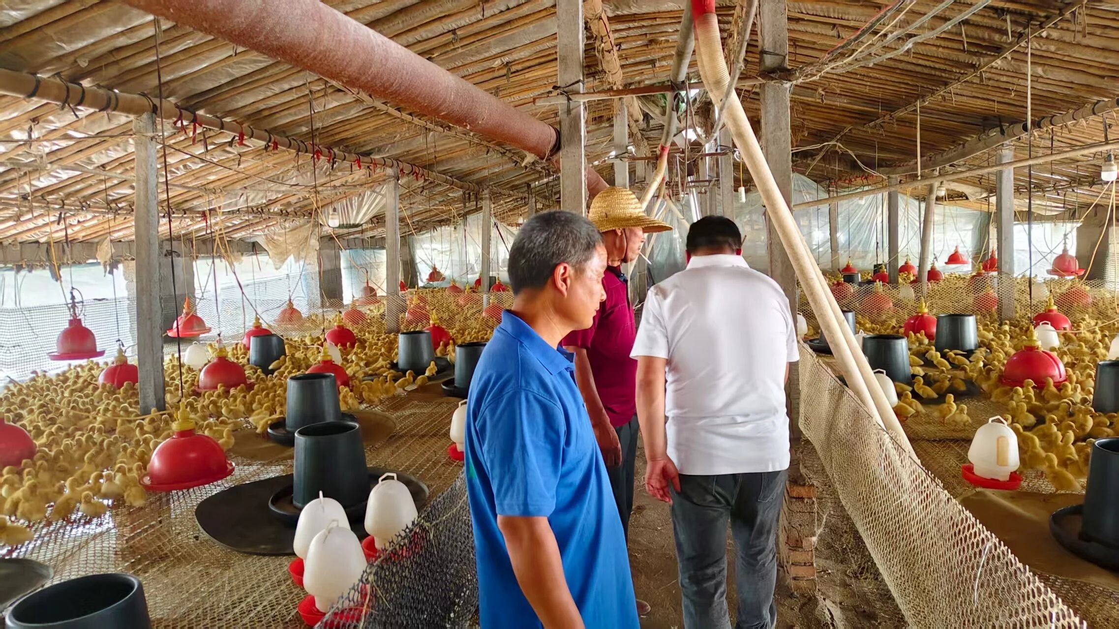 ? ? ? 初識栗老板,是在一個酷熱的午后。陽光如熾熱的火焰,無情地炙烤著大地,整個世界仿佛被放進了巨大的蒸籠。我走進那片鴨棚區(qū)域時,一眼便看到了他——頭戴一頂草編的太陽帽,身形在鴨棚間穿梭。汗水濕透了他的衣衫,可他卻渾然不顧,一心撲在養(yǎng)殖管理上,時而俯身查看鴨子的狀態(tài),時而抬頭觀察鴨棚的環(huán)境。那一刻,“認真、樸實”這兩個詞在我腦海中瞬間浮現(xiàn),這便是栗老板留給我的第一印象。