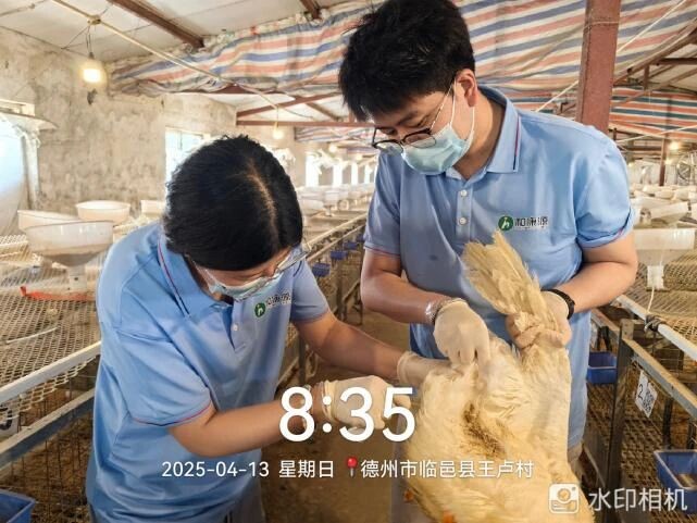 當(dāng)清晨八點(diǎn)半一縷陽光灑在大地上,動保中心種鴨化驗室現(xiàn)場獸醫(yī)鄒志強(qiáng)和姜媛正在育種場采取種鴨肛拭子樣品,用于每月的病原監(jiān)測。