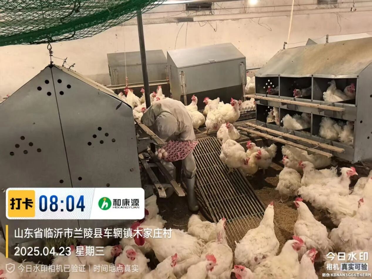 早上5:30揀雞;李榮卿副場長每天早上早起跟著出雞人員一起揀雞,對出雞現(xiàn)場關(guān)注蛋殼污染程度毛蛋、弱雛比例等能及時發(fā)現(xiàn)出雞早晚是否合適,對應(yīng)批次后續(xù)調(diào)整方向。