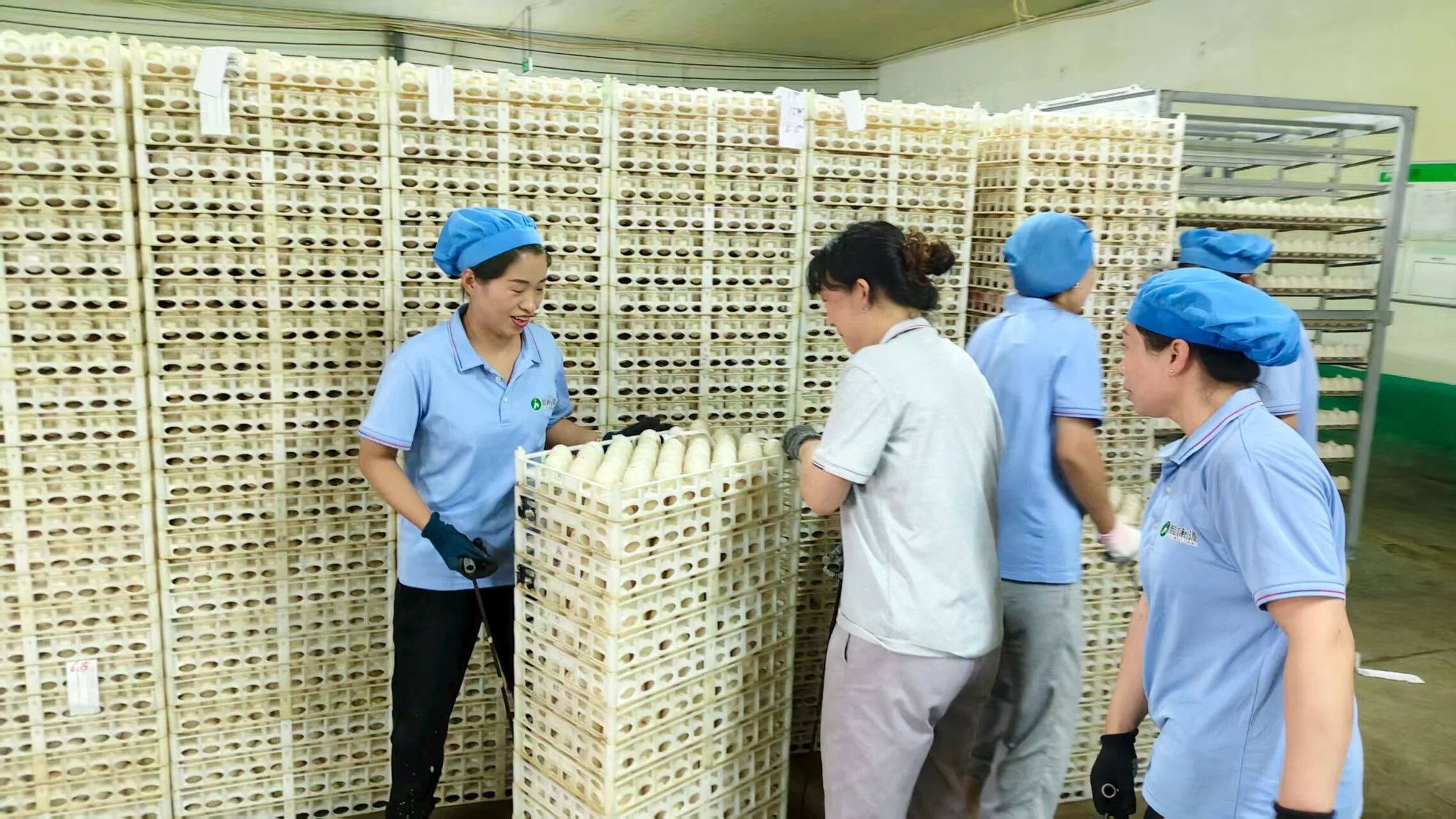 在和櫻孵化場,有這樣一位忙碌而堅定的身影,她就是張麗梅。初次見到她時,她正全身心投入到協(xié)調(diào)卸蛋的事項中。我們幾次試圖插話,卻都因她那風(fēng)風(fēng)火火的步伐和利落的辦事節(jié)奏而未能如愿。在電話溝通不暢的烈日下,她不辭辛勞地來回奔波。卸蛋處較高,她毫不猶豫地爬上爬下,直至將問題妥善溝通解決,確保卸車效率不受影響,才稍稍松了一口氣。趁著這短暫的間隙,我們終于有機(jī)會與她聊上一聊。
