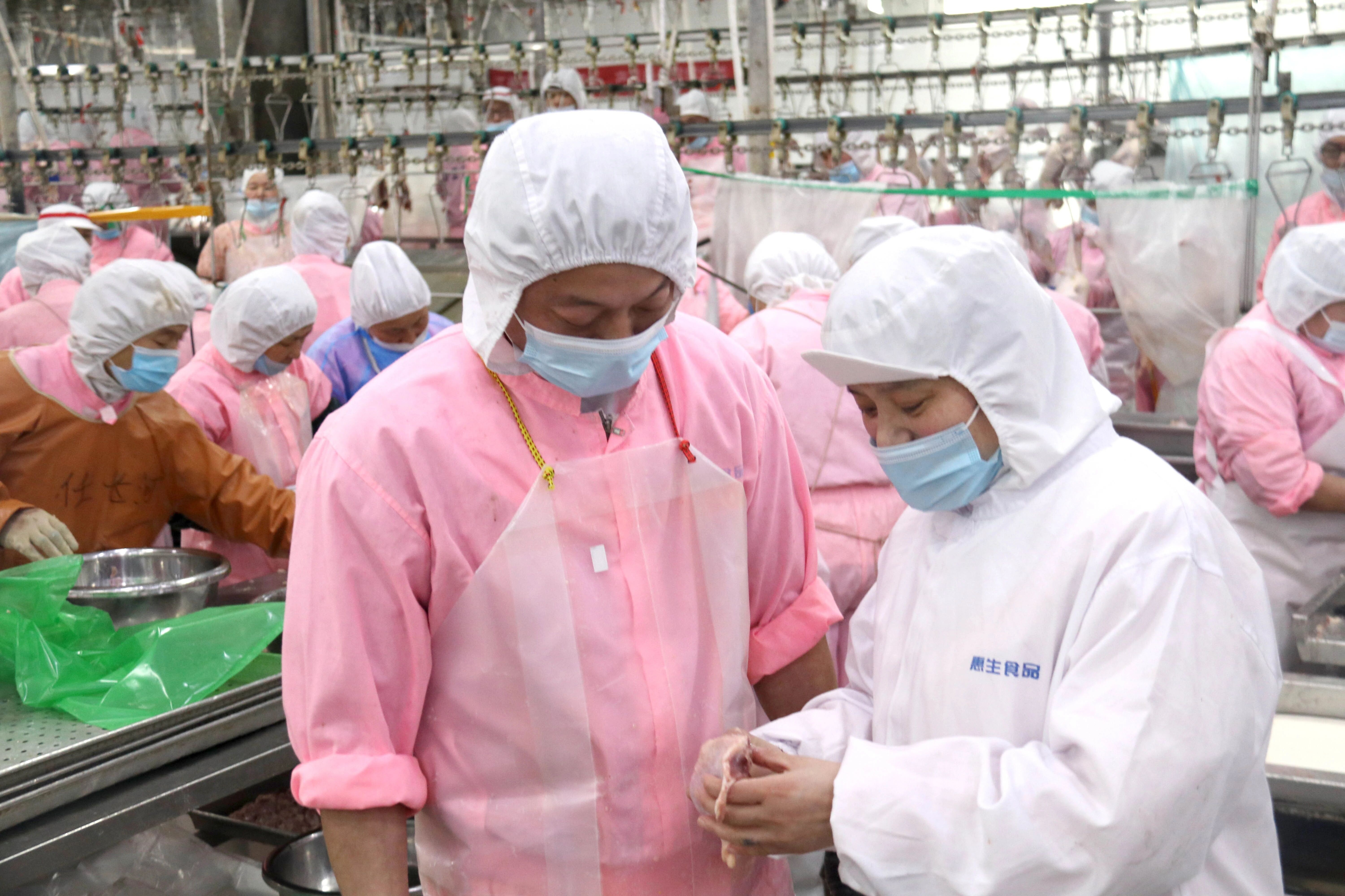 在惠生食品鴨產(chǎn)品分割生產(chǎn)線上,每一個(gè)員工身影都在井然有序地操作著,其中有一位割腿工李松松受到了班組長(zhǎng)的一致好評(píng)。作為一名普通的生產(chǎn)線員工,李松松用實(shí)際行動(dòng)詮釋了公司對(duì)于高質(zhì)量生產(chǎn)的嚴(yán)格要求,成為了生產(chǎn)線上的一位“標(biāo)桿”。