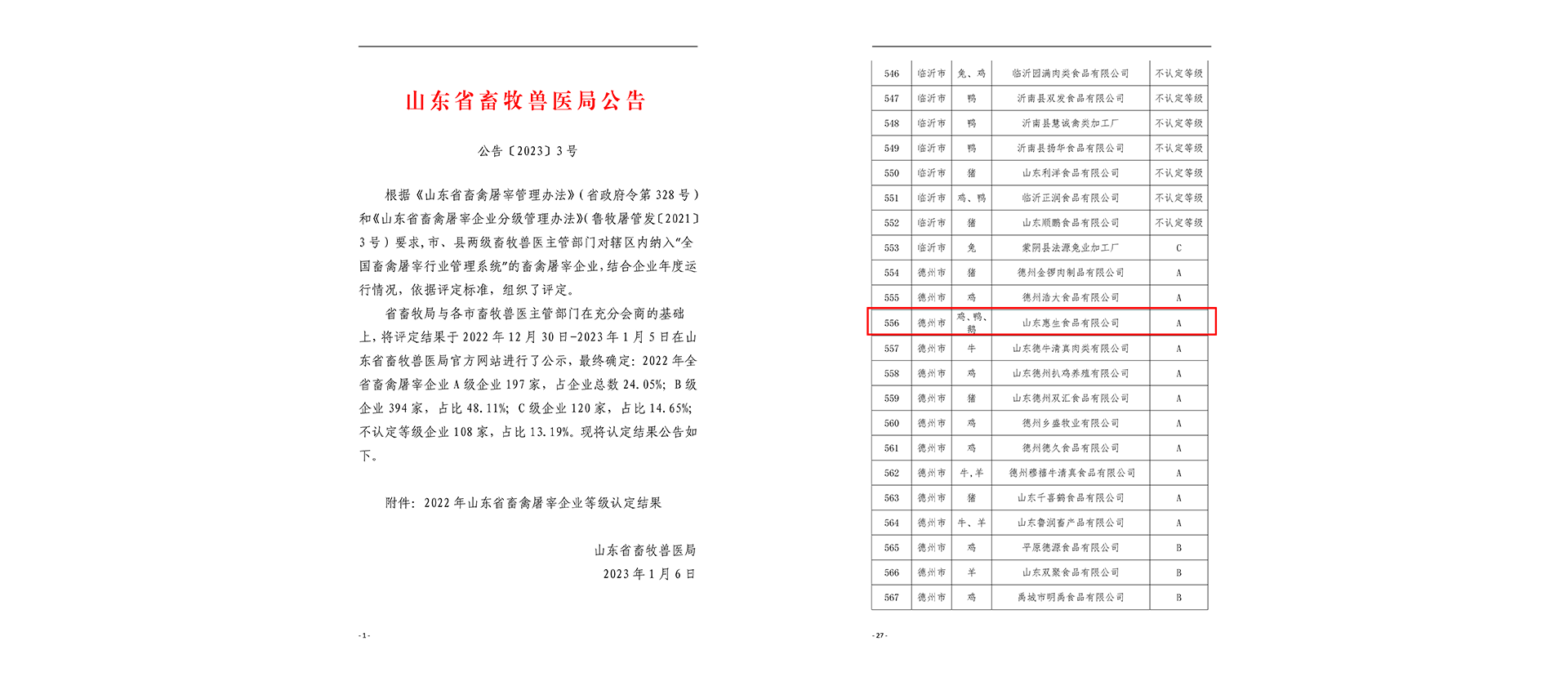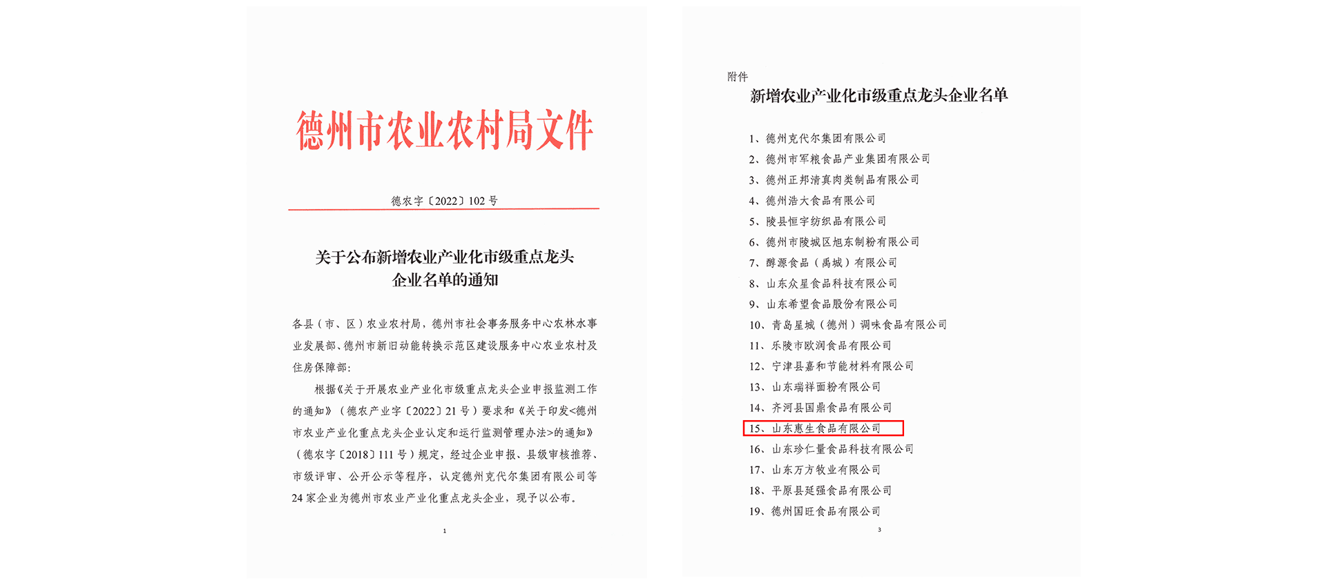 近日,山東惠生食品有限公司先后獲得“山東省德州市農(nóng)業(yè)產(chǎn)業(yè)化重點(diǎn)龍頭企業(yè)”和“山東省畜禽屠宰企業(yè)A級(jí)”兩項(xiàng)榮譽(yù)稱號(hào)。