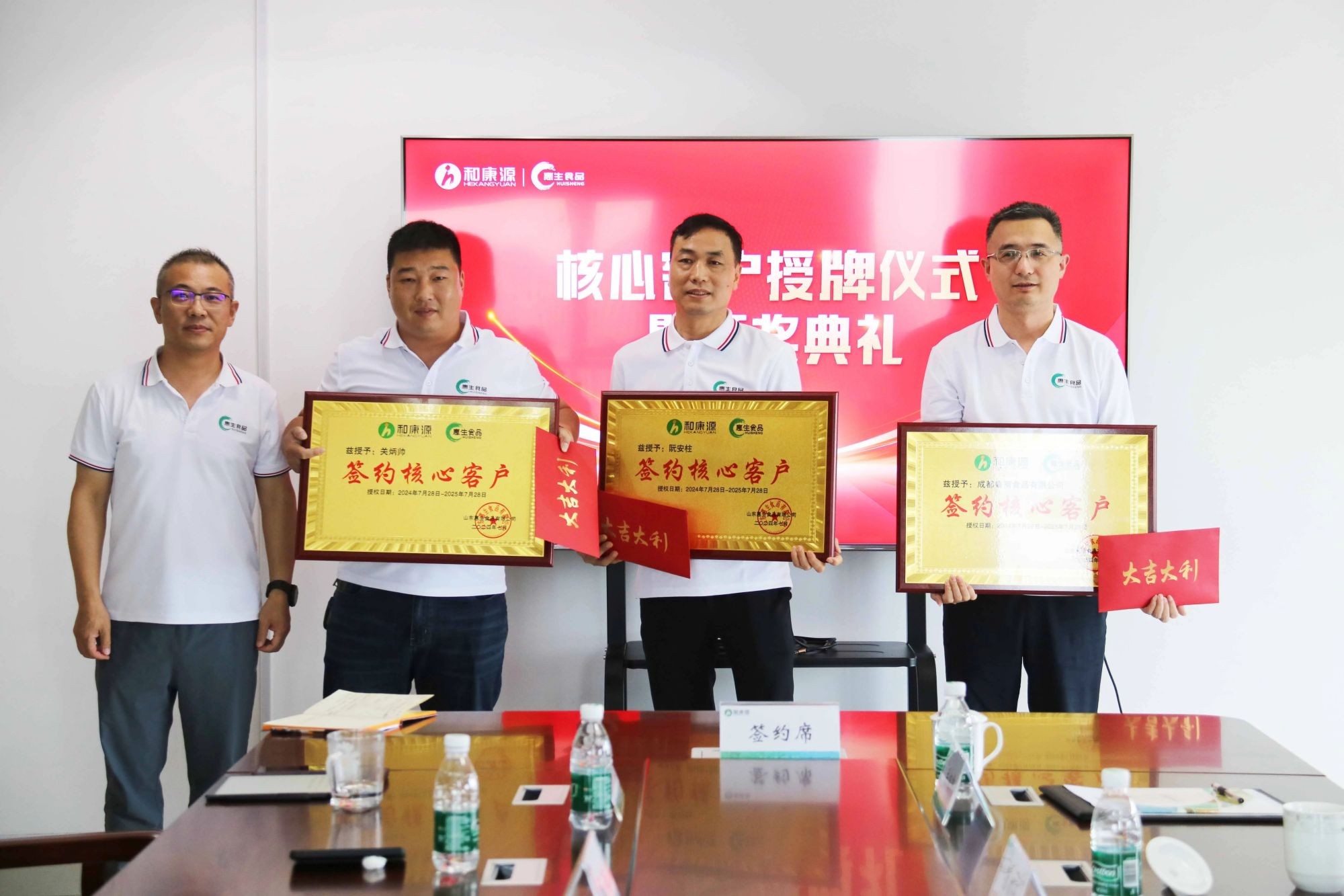 ? ? ? ? 共創(chuàng)新機(jī)遇,共謀新發(fā)展?;萆称方裉斓拈煵角靶校x不開廣大客戶及合作伙伴的助力,交流會(huì)上,惠生食品在集團(tuán)領(lǐng)導(dǎo)及各位客戶代表的見證下,舉行了核心客戶的頒獎(jiǎng)及授牌儀式,同時(shí),新晉客戶現(xiàn)場也進(jìn)行了的簽約及授權(quán)。