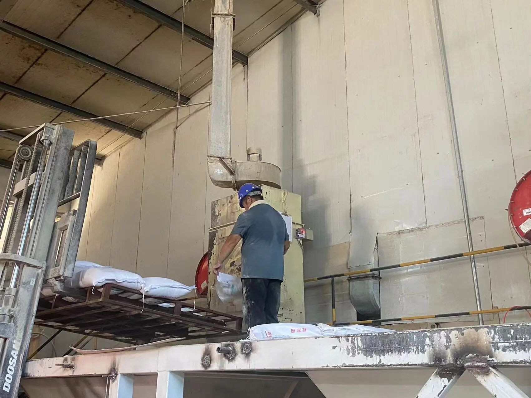 ? ? ?為保障車(chē)間的正常生產(chǎn),東阿飼料倒運(yùn)工人朱成軍補(bǔ)位投料工,提前為夜班生產(chǎn)做準(zhǔn)備,減少夜班生產(chǎn)備料時(shí)間,提高生產(chǎn)效率。汗水已經(jīng)浸透了戴在脖子上的毛巾,衣服也早已濕透,但他們依然站在高溫的車(chē)間里保障生產(chǎn)。
