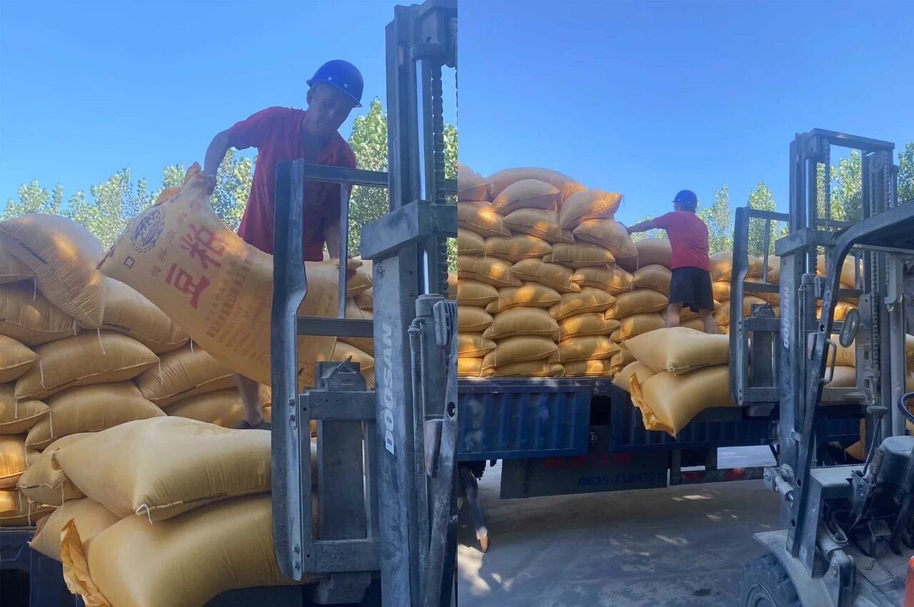 ? ? ? 庫(kù)倫飼料裝卸工東雷,炎炎夏日為客戶(hù)裝料。汽車(chē)上被曬得熱浪滾滾,裝卸工們依然有條不紊,毫不懈怠,為保障飼料的及時(shí)發(fā)運(yùn),他們時(shí)刻保持著高效率和緊密地配合。
