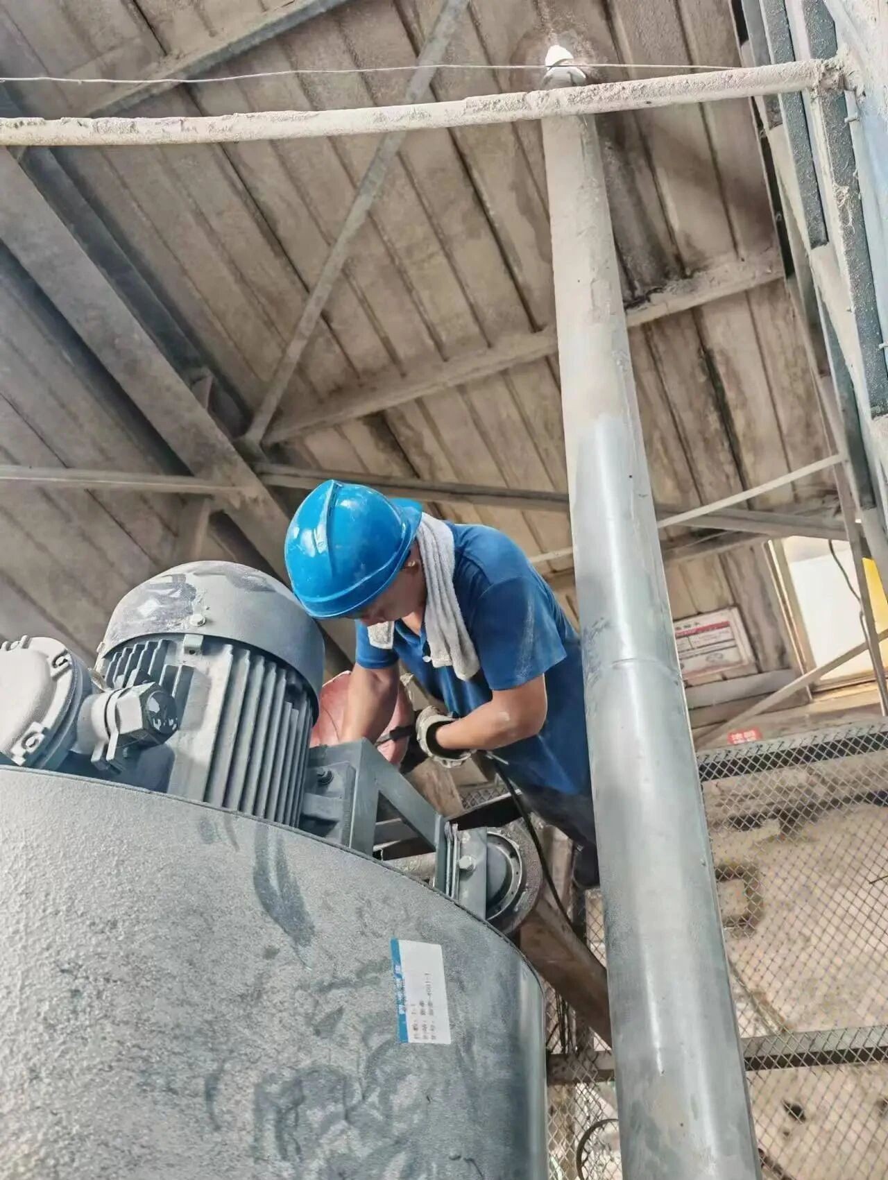 ? ? ? 新泰飼料維修工王科民正在車(chē)間設(shè)備故障,維修工鉆進(jìn)布滿蒸汽管道的狹小空間里緊急維修,不一會(huì)汗如雨下。