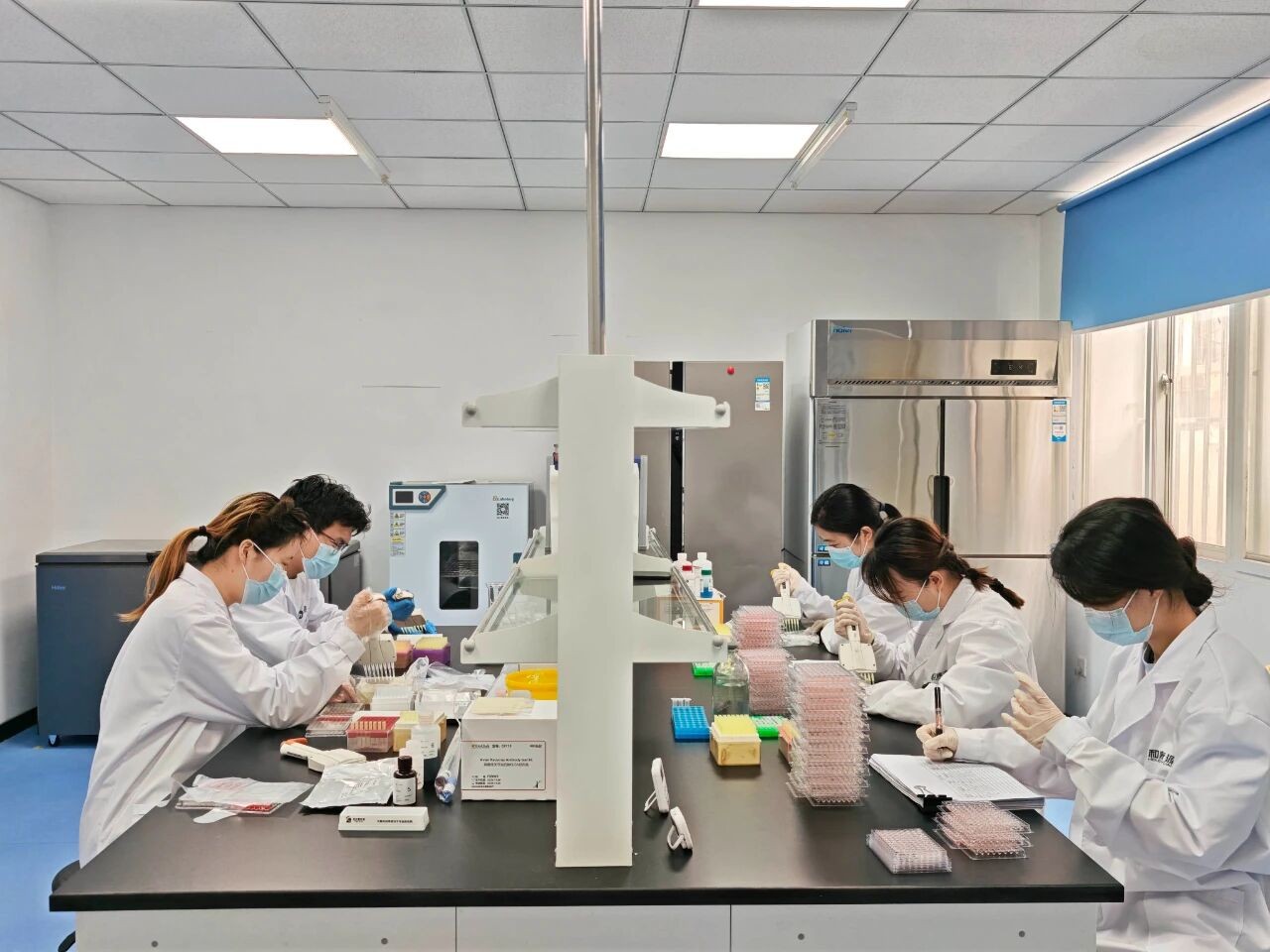 中心化驗室檢測人員專注進(jìn)行常規(guī)抗體滴度測定和ELISA檢測的場景。他們對一線臨床樣本進(jìn)行精準(zhǔn)檢測,為臨床治療及免疫效果評估提供關(guān)鍵依據(jù),為一線養(yǎng)殖保駕護(hù)航。實驗室里此起彼伏的加樣聲、儀器嗡鳴聲,見證著檢測工作者構(gòu)筑動物疫病防控屏障的日常堅守。