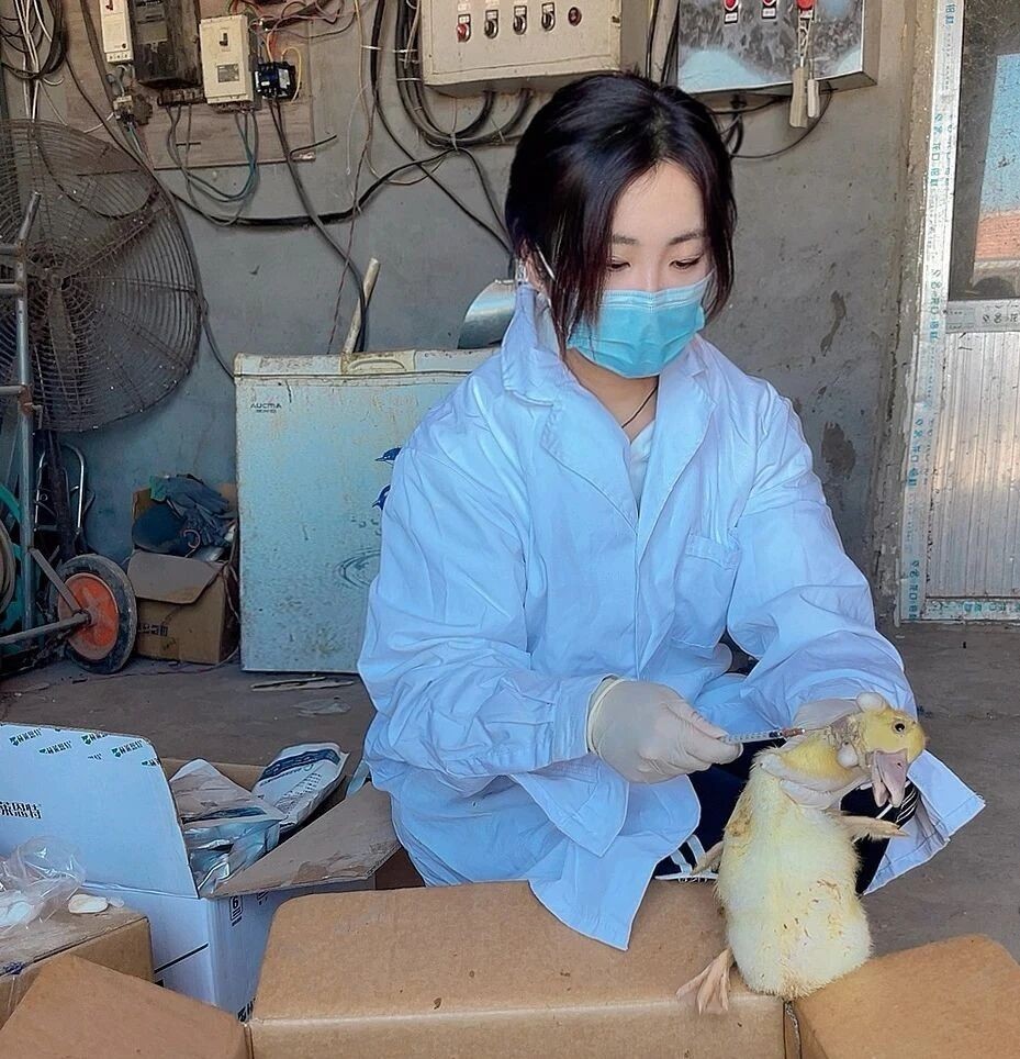 在商品鴨放養(yǎng)戶養(yǎng)殖一線,化驗員張筱正在采集免疫鴨肝活苗7日后的鴨群血樣。通過科學(xué)監(jiān)測抗體水平與發(fā)病數(shù)據(jù),系統(tǒng)評估鴨肝活苗免疫方案對降低病毒性鴨肝炎的防控效果,助力降低發(fā)病率,提升養(yǎng)殖戶的成活率,為鴨肝疫病防控提供可推廣的解決方案。