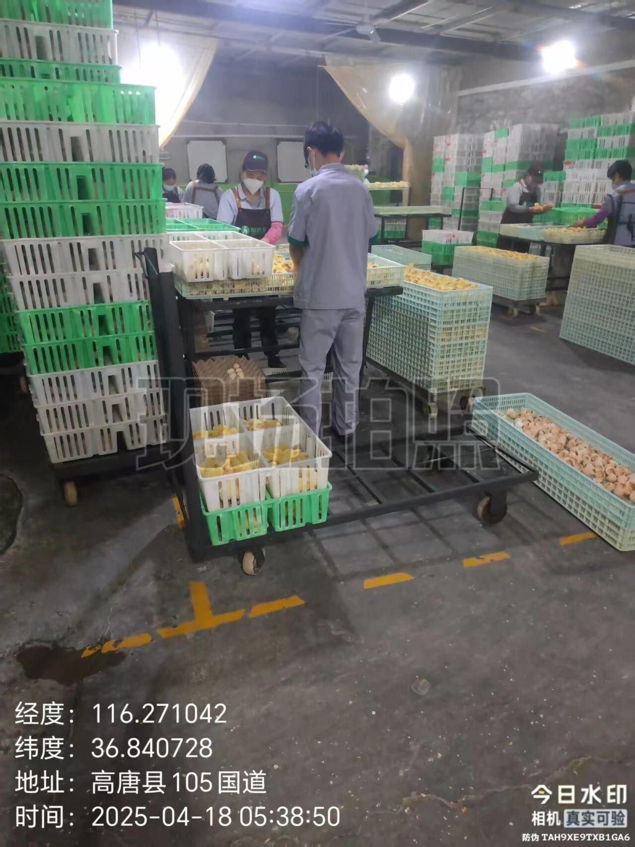 早上5:30揀雞;李榮卿副場長每天早上早起跟著出雞人員一起揀雞,對出雞現(xiàn)場關(guān)注蛋殼污染程度毛蛋、弱雛比例等能及時發(fā)現(xiàn)出雞早晚是否合適,對應(yīng)批次后續(xù)調(diào)整方向。