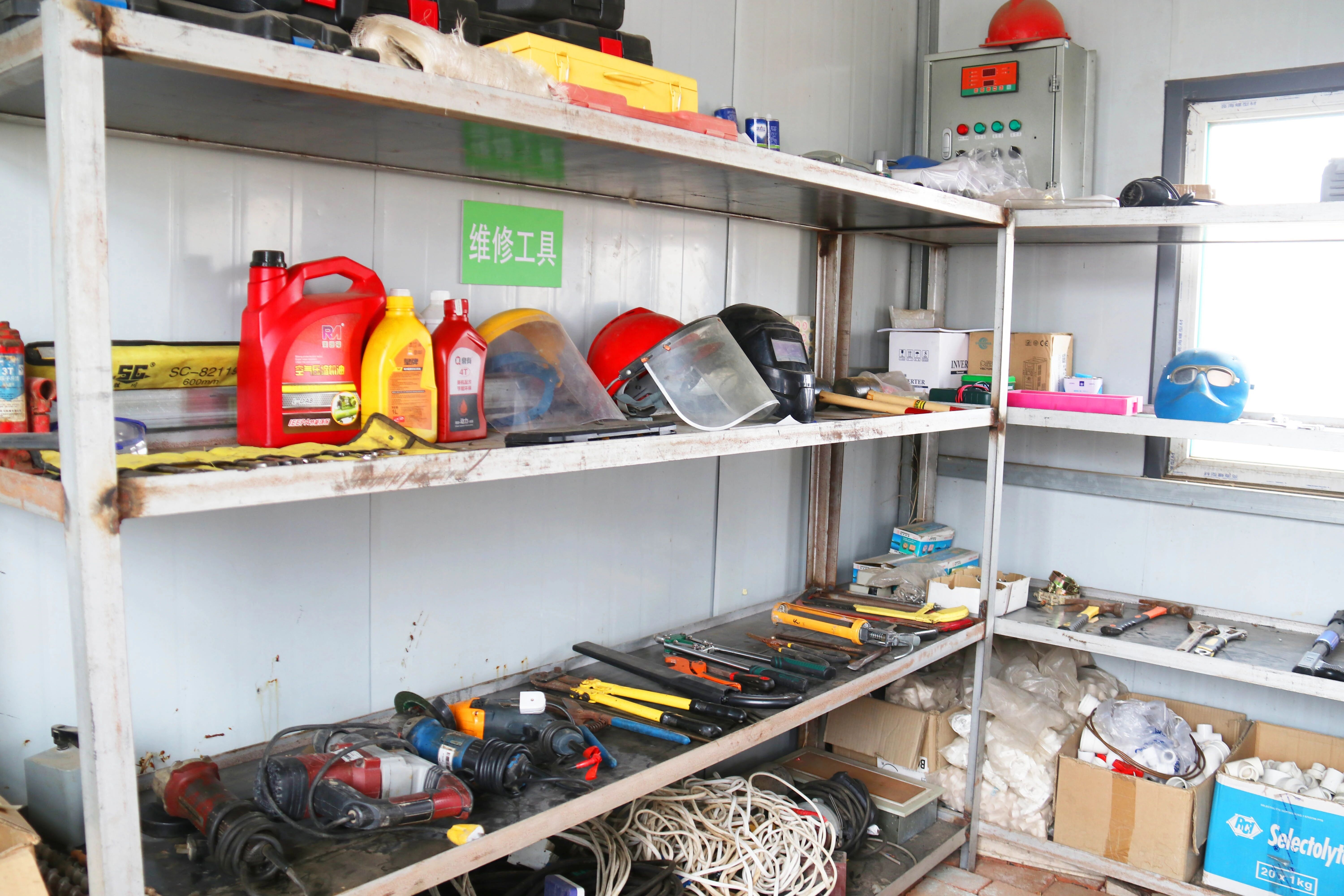 除了日常的維修工作,馬師傅還時不時的幫忙場里的其他工作,我們見到馬師傅的時候,正巧他幫忙裝蛋車回來,馬師傅說,哪里需要哪里干,大家一起裝蛋車,確保鴨蛋能夠及時地運往孵化場。隨后,跟隨馬師傅走進不大的修理間,映入眼簾的是整整齊齊的維修工具,配件分類擺放,標簽清晰明了,中間一個自制的工作臺,干凈整潔,這就是馬師傅的工作小天地,整潔的工具間讓我們對馬師傅的工作頗有敬意。